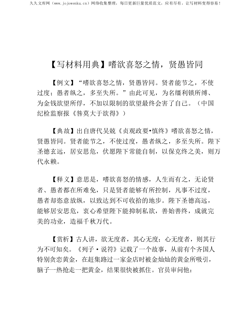 【写材料用典】嗜欲喜怒之情,贤愚皆同