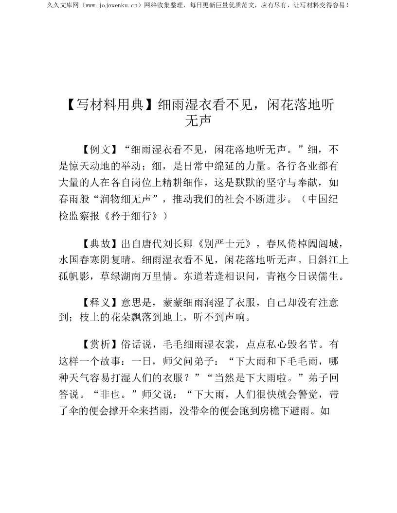 首页写作提升写作用典【写材料用典】细雨湿衣看不见,闲花落地听无声
