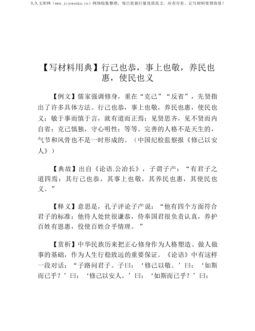 【写材料用典】行己也恭,事上也敬,养民也惠,使民也义