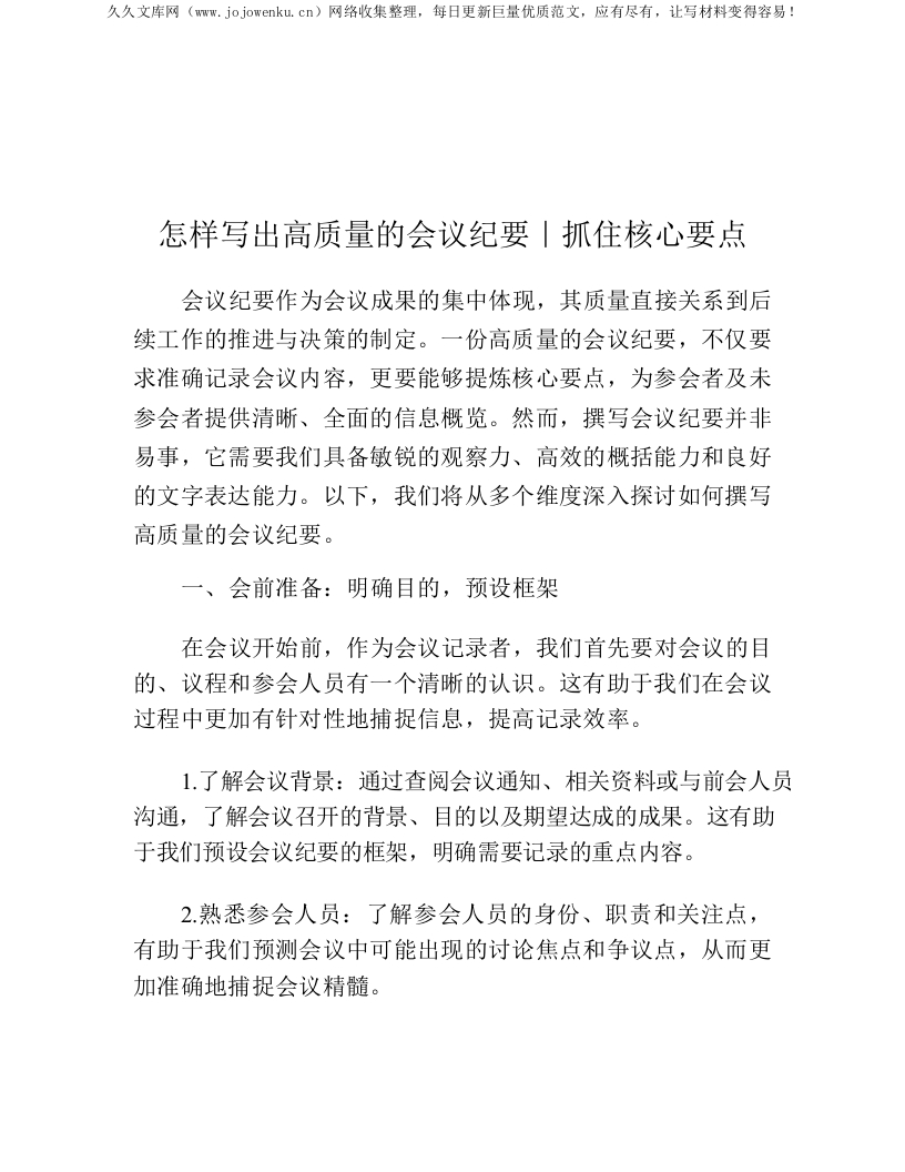 怎样写出高质量的会议纪要|抓住核心要点