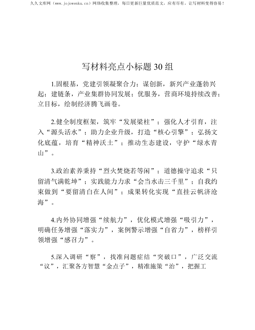 写材料亮点小标题30组