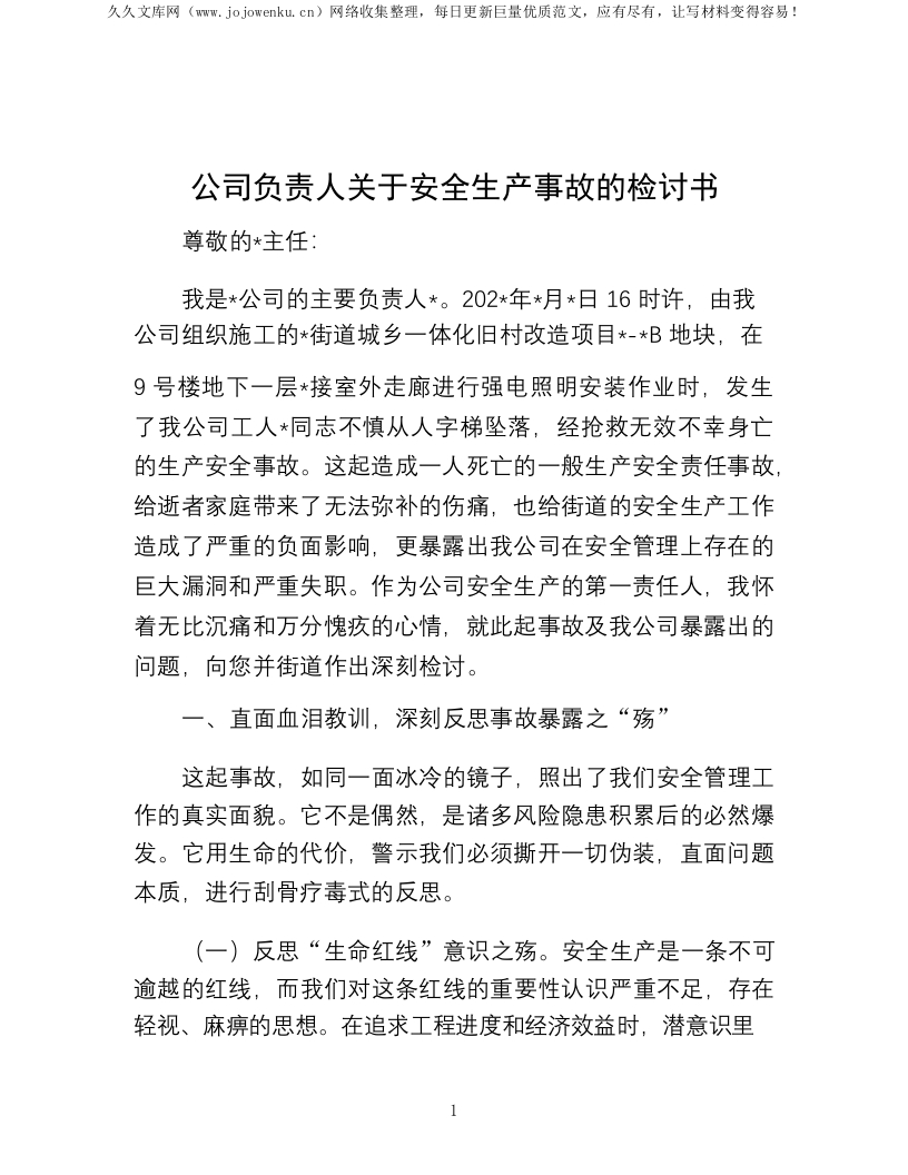 公司负责人关于安全生产事故的检讨书