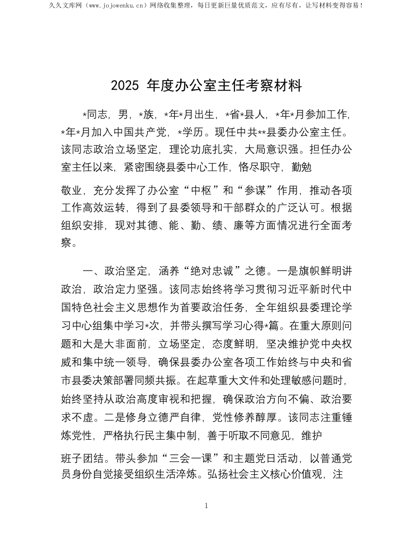2025年度办公室主任考察材料