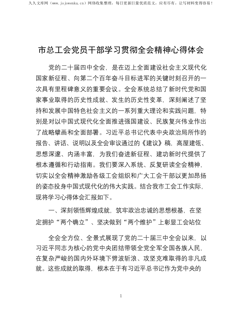 首页公文大全心得体会市总工会党员干部学习贯彻全会精神心得体会