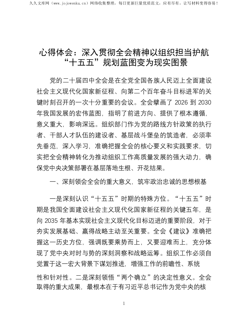 心得体会:深入贯彻全会精神 以组织担当护航“十五五”规划蓝图变为现实图景