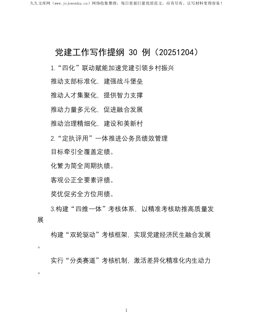 首页写作提升写作提纲党建工作写作提纲30例(20251204)