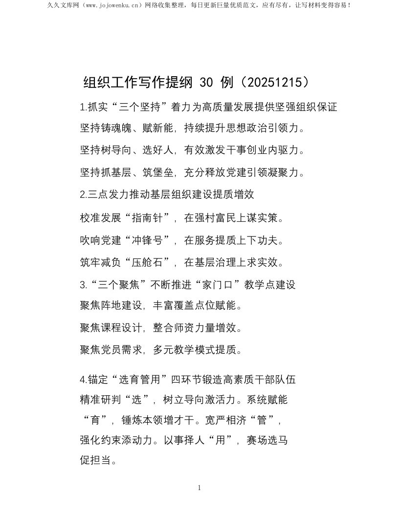 首页写作提升写作提纲组织工作写作提纲30例(20251215)