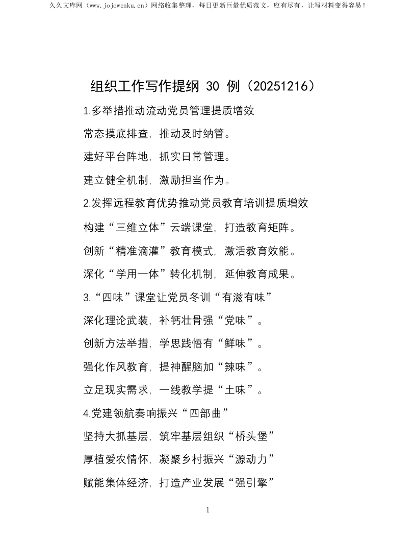 组织工作写作提纲30例(20251216)
