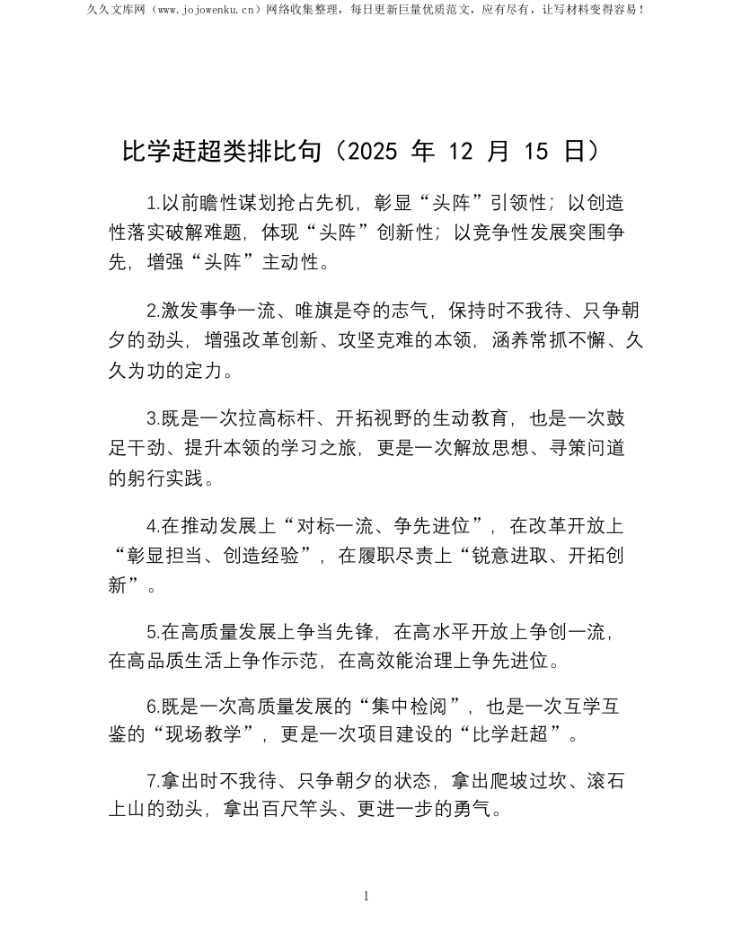 首页写作提升排比句比学赶超类排比句(2025年12月15日)
