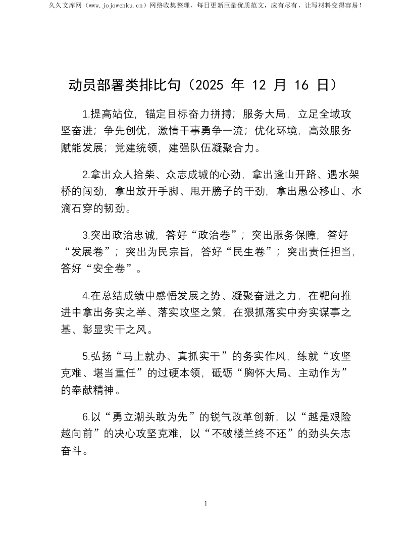 首页写作提升排比句动员部署类排比句(2025年12月16日)