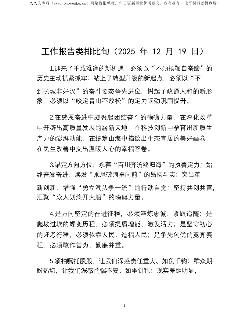 首页写作提升排比句工作报告类排比句(2025年12月19日)