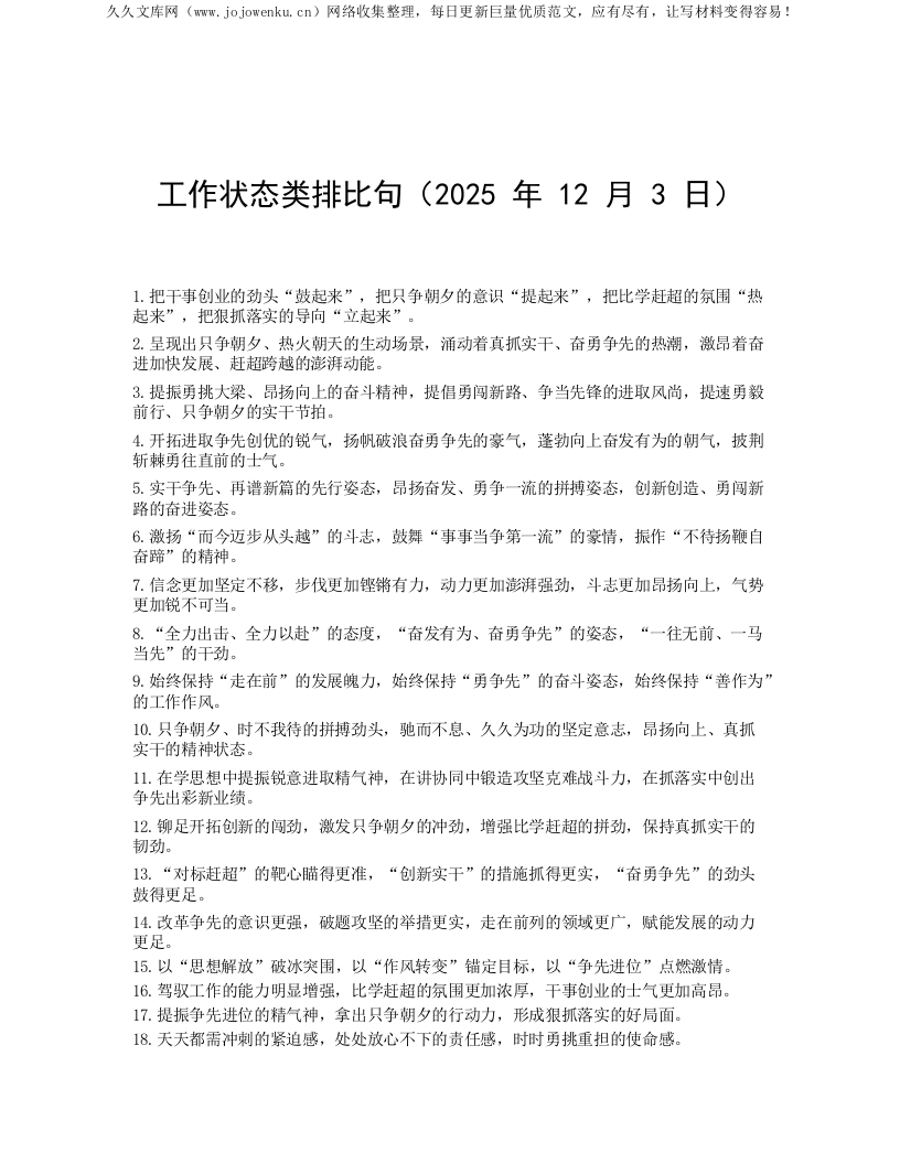工作状态类排比句(2025年12月3日)