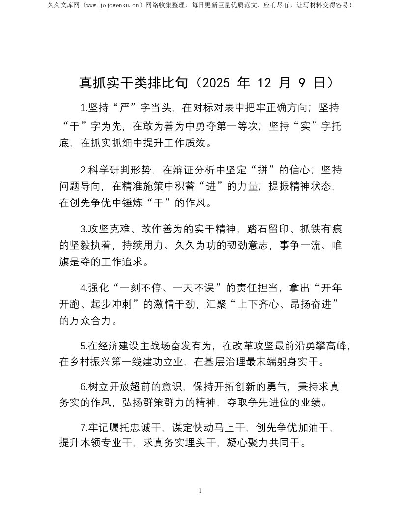 真抓实干类排比句(2025年12月9日)