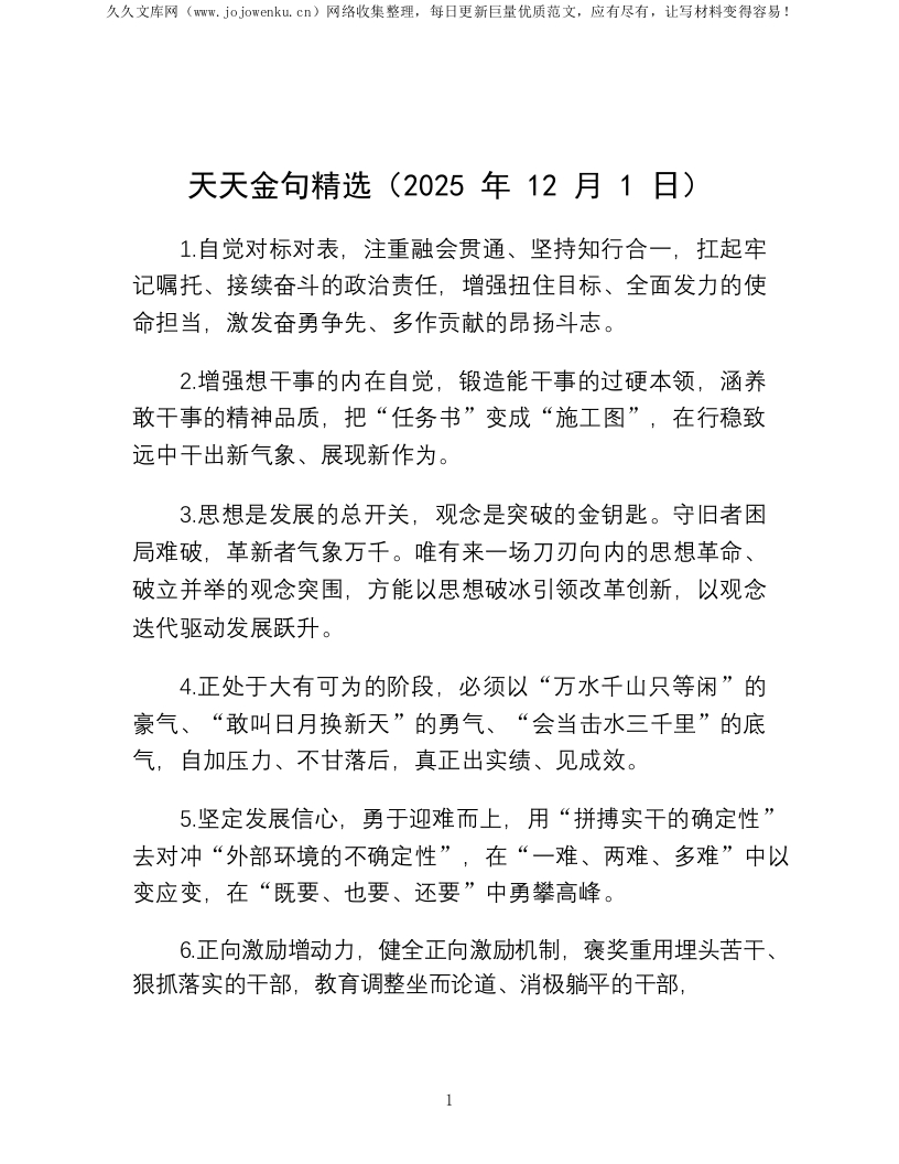 首页写作提升精选金句天天金句精选(2025年12月1日)