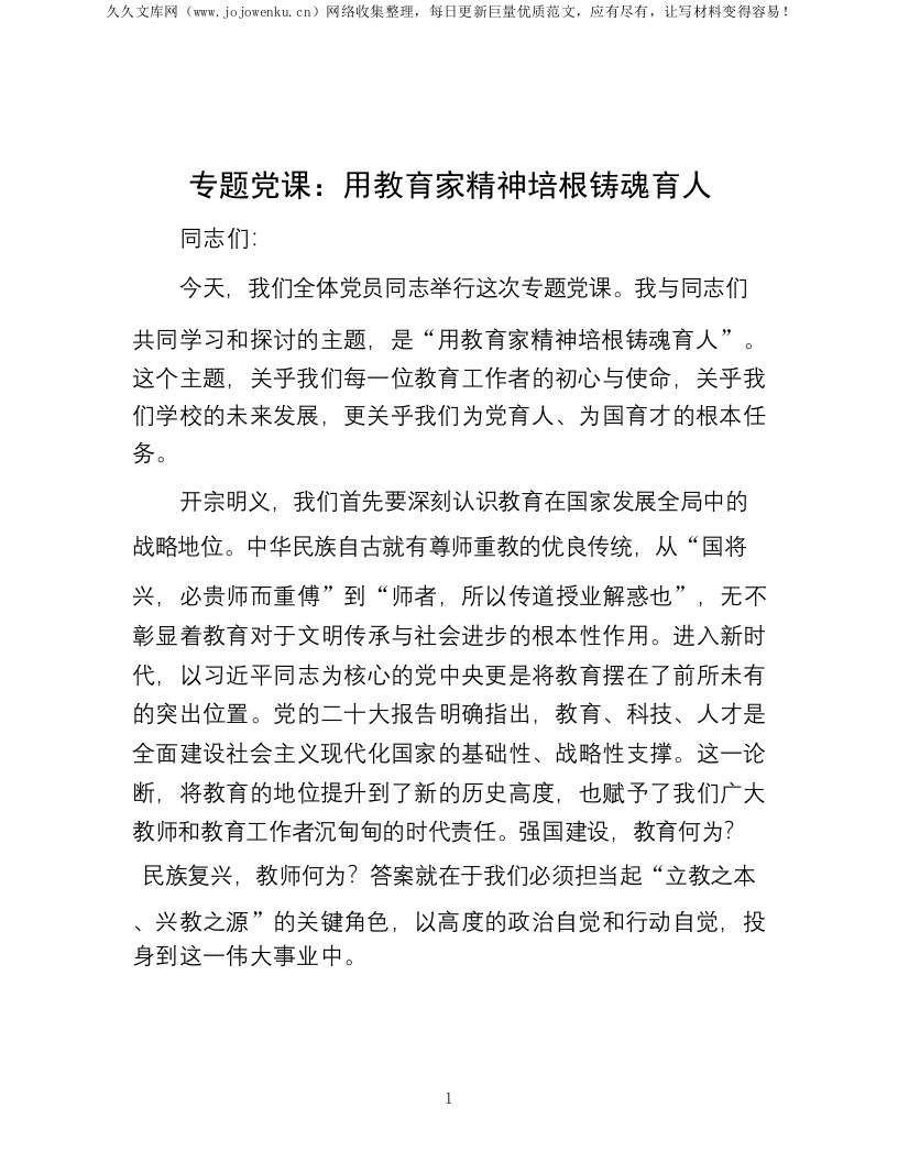 首页公文大全党课讲稿 专题党课:用教育家精神培根铸魂育人