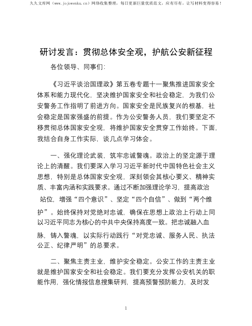 首页公文大全讲话发言交流发言研讨发言:贯彻总体安全观,护航公安新征程