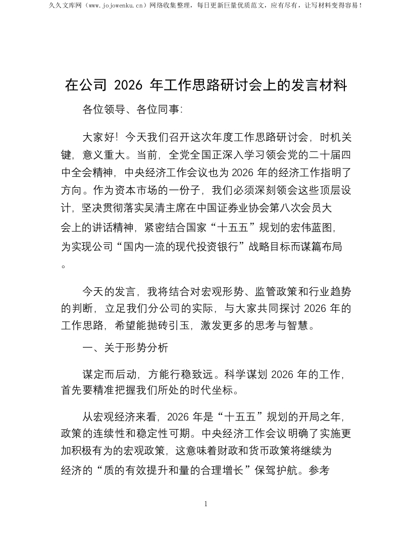 在公司2026年工作思路研讨会上的发言材料