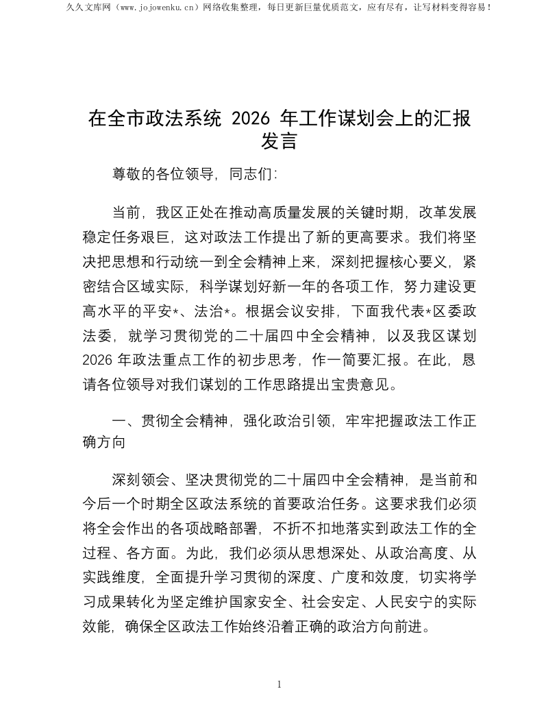 首页公文大全讲话发言交流发言在全市政法系统2026年工作谋划会上的汇报发言