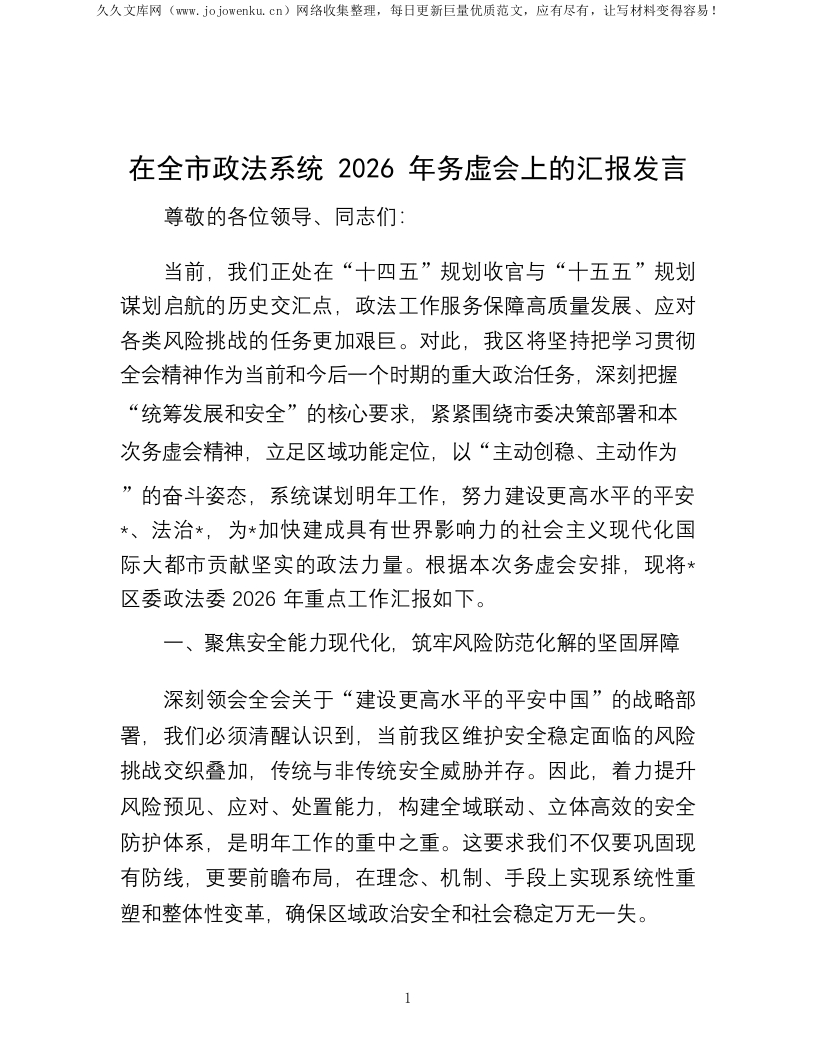 首页公文大全讲话发言交流发言在全市政法系统2026年务虚会上的汇报发言