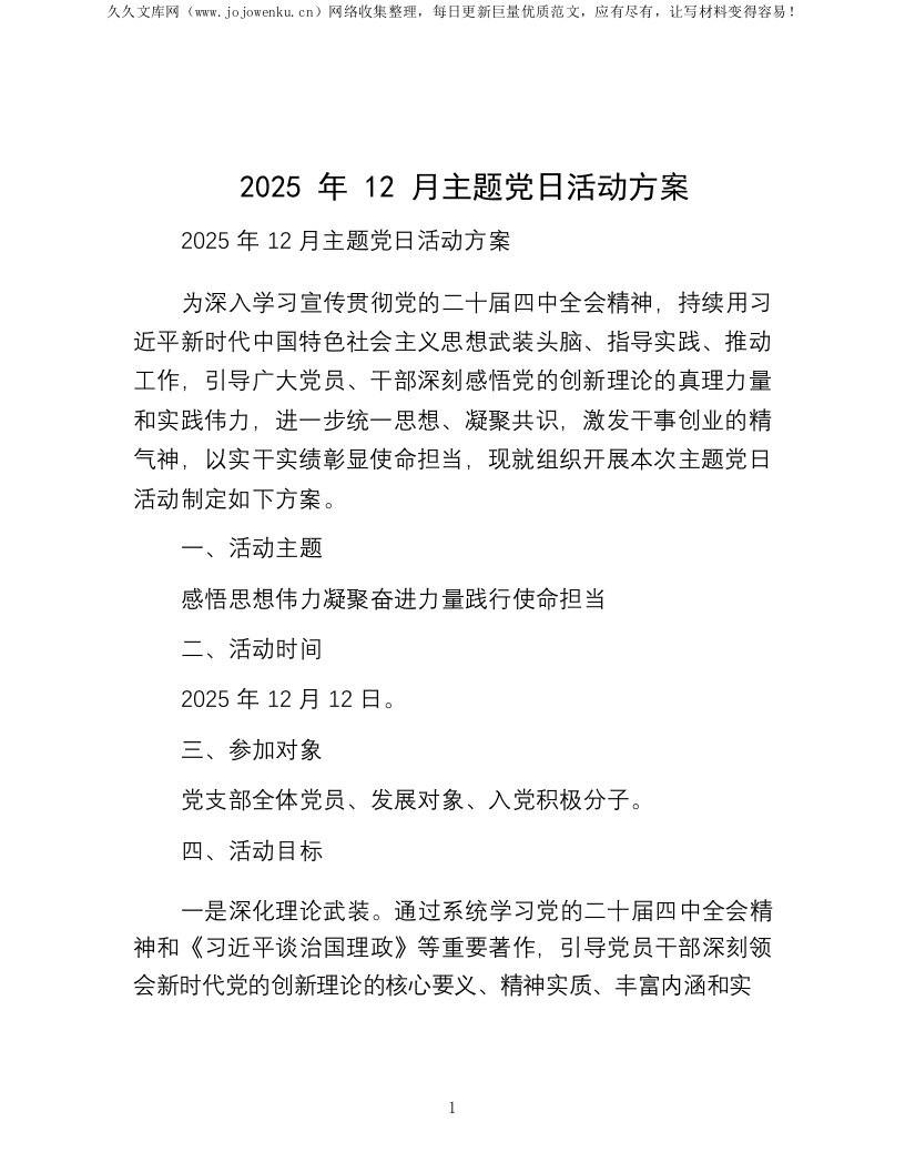 2025年12月主题党日活动方案