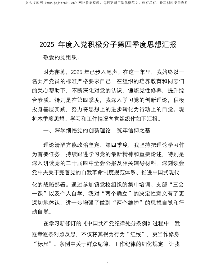 首页公文大全总结报告汇报2025年度入党积极分子第四季度思想汇报