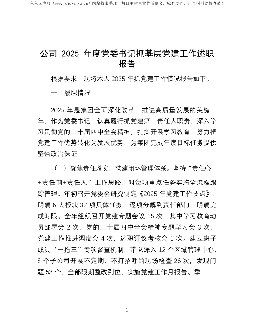公司2025年度党委书记抓基层党建工作述职报告_重名HD4wy
