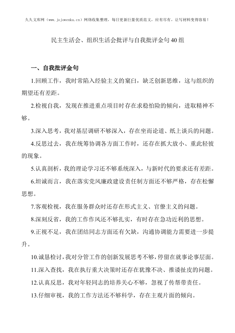首页公文大全组织生活会民主生活会、组织生活会批评与自我批评金句40组