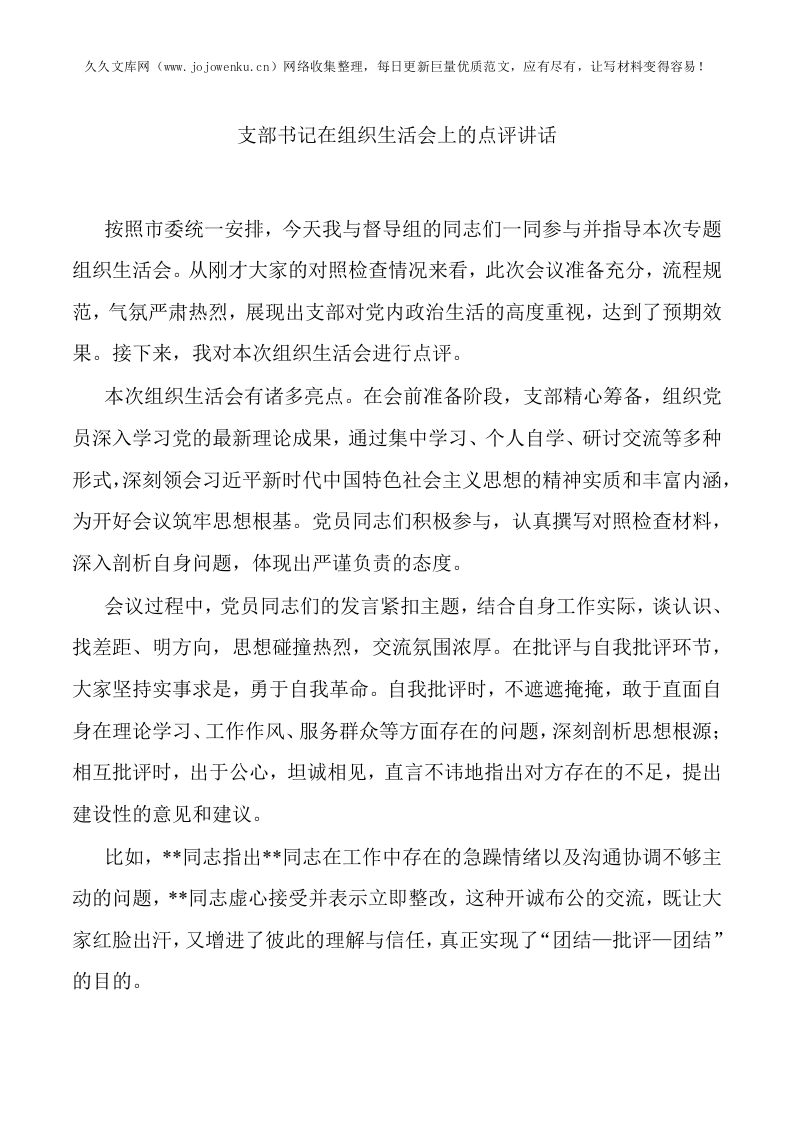 首页公文大全组织生活会支部书记在组织生活会上的点评讲话