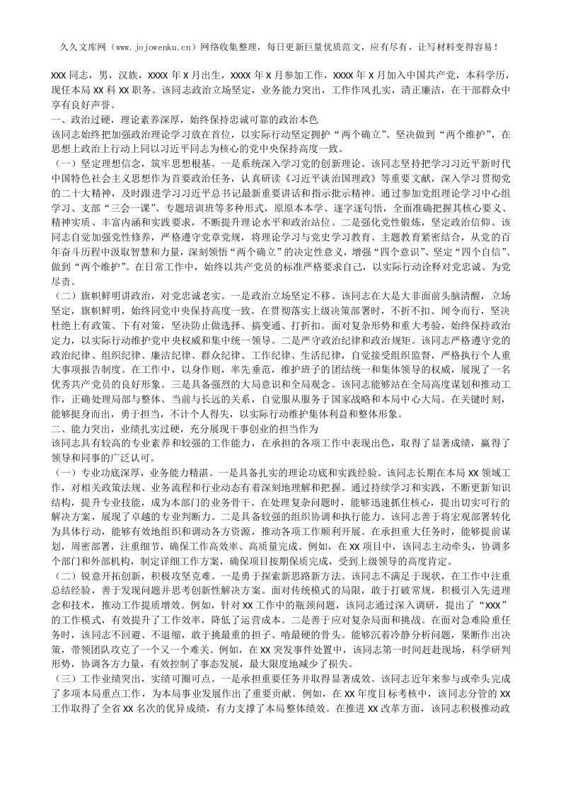 首页公文大全申请入党等党务材料现实表现关于拟提拔任用人员的现实表现材料