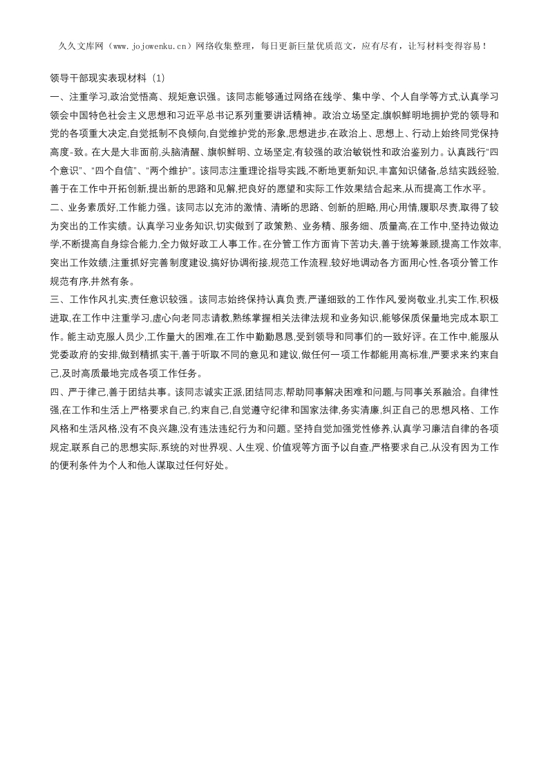 首页公文大全申请入党等党务材料现实表现领导干部现实表现材料汇编12篇