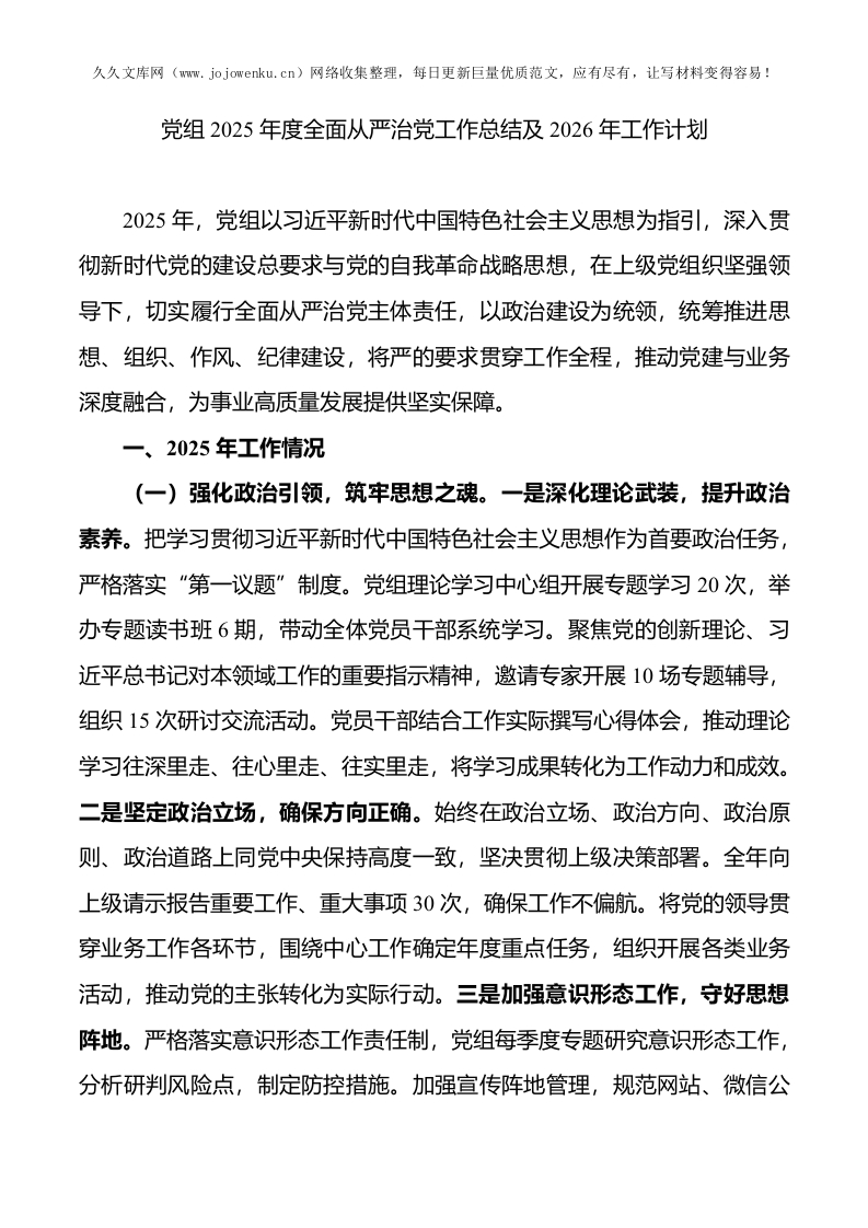 首页公文大全总结报告总结党组2025年度全面从严治党工作总结及2026年计划