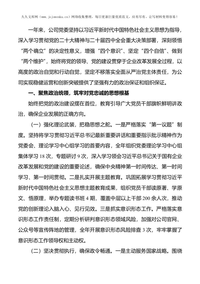 某国有企业党委2025年落实全面从严治党主体责任工作总结