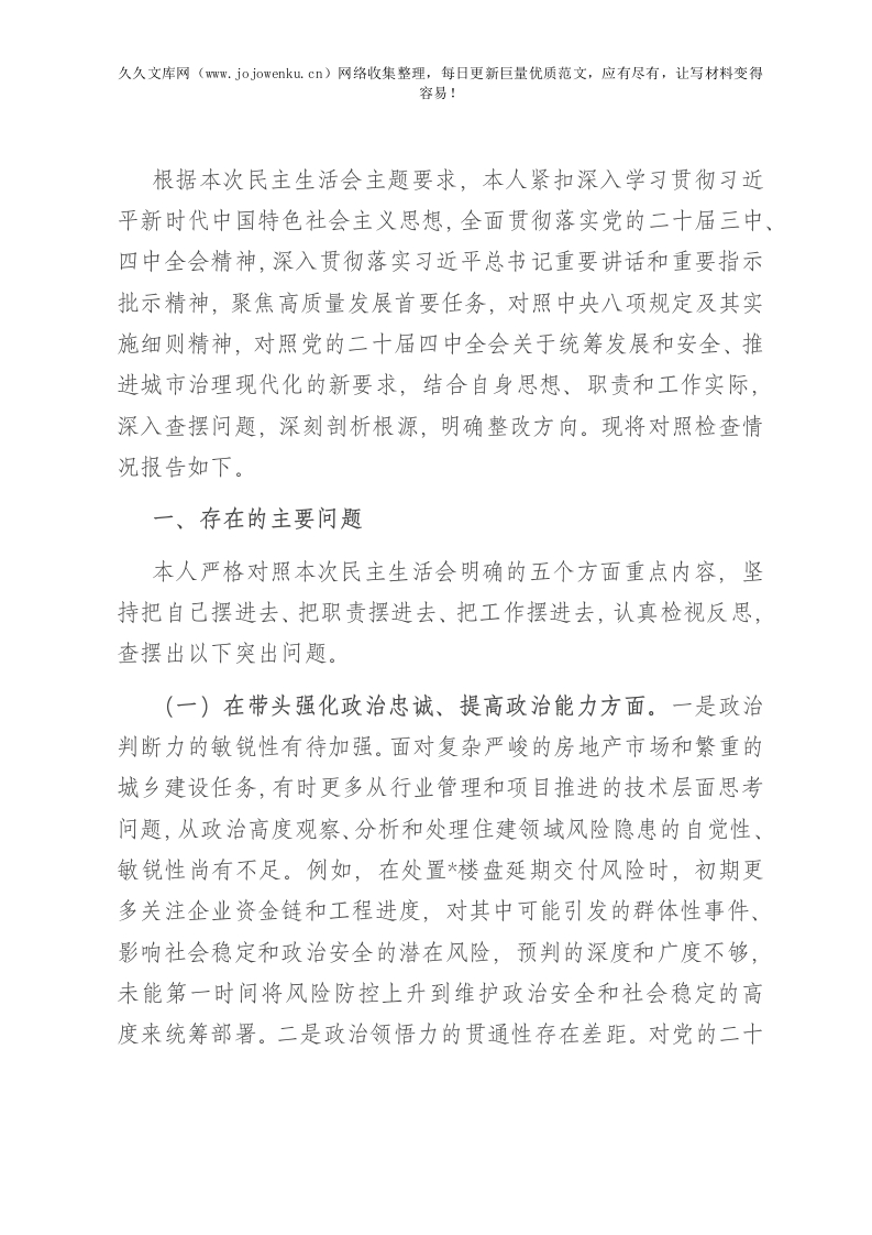 首页公文大全民主生活会住房和城乡建设局党组书记2025年度民主生活会个人对照检查材料(五个带头)