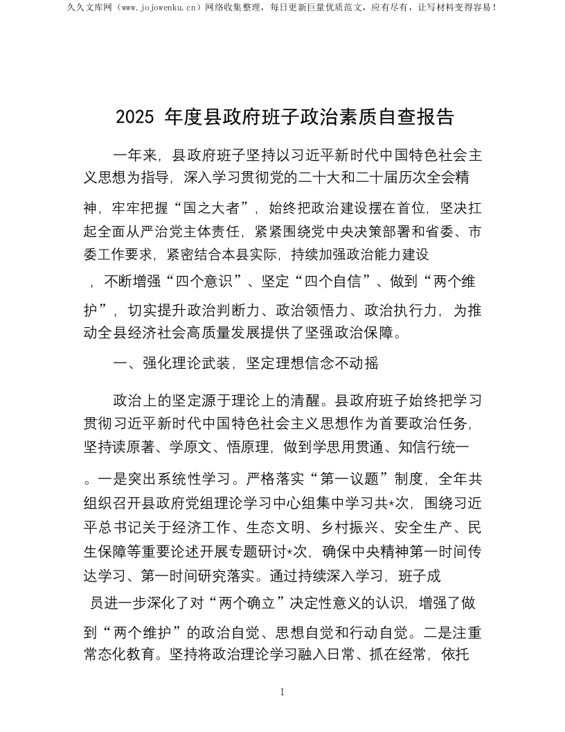 2025年度县政府班子政治素质自查报告