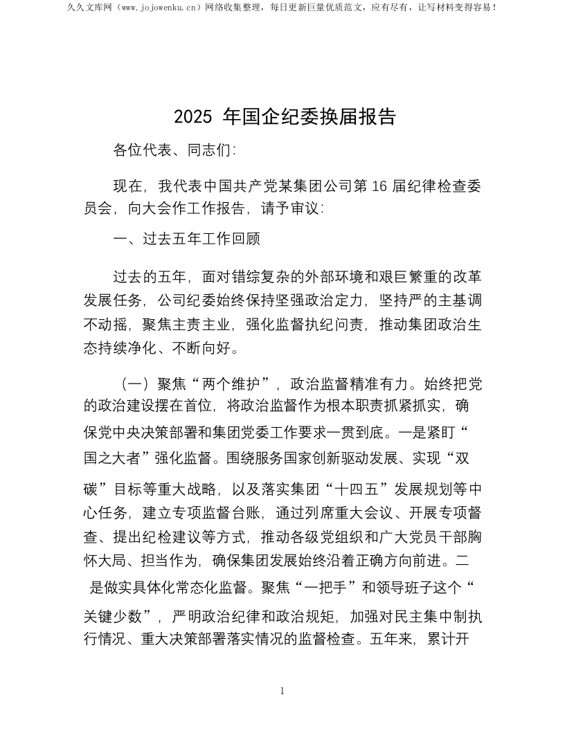 2025年国企纪委换届报告