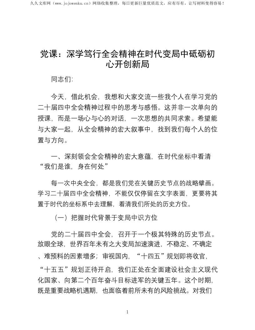 党课:深学笃行全会精神 在时代变局中砥砺初心开创新局