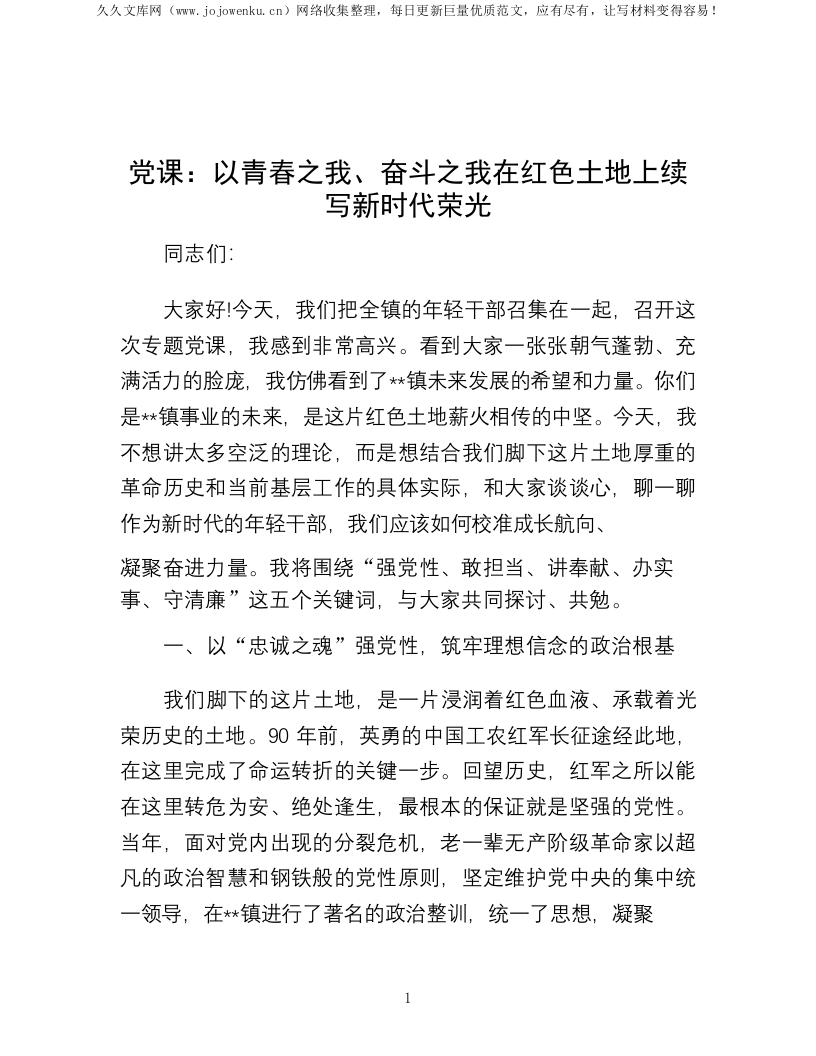 首页公文大全党课讲稿 党课:以青春之我、奋斗之我在红色土地上续写新时代荣光