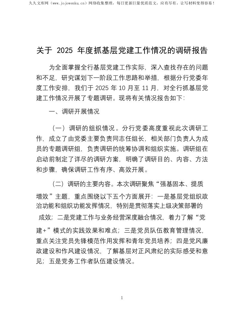 首页调查研究调研报告关于2025年度抓基层党建工作情况的调研报告