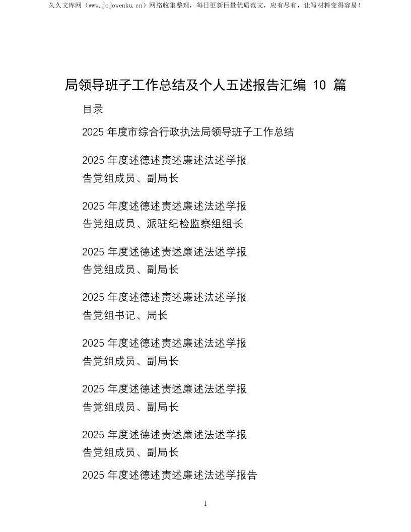 局领导班子工作总结及个人五述报告汇编10篇