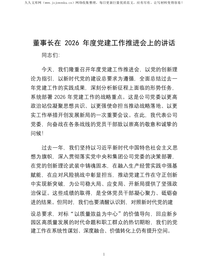董事长在2026年度党建工作推进会上的讲话