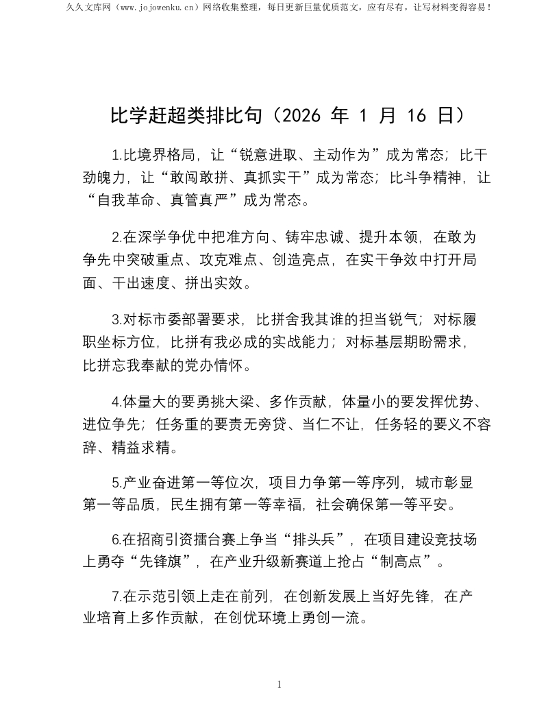 首页写作提升排比句比学赶超类排比句(2026年1月16日)