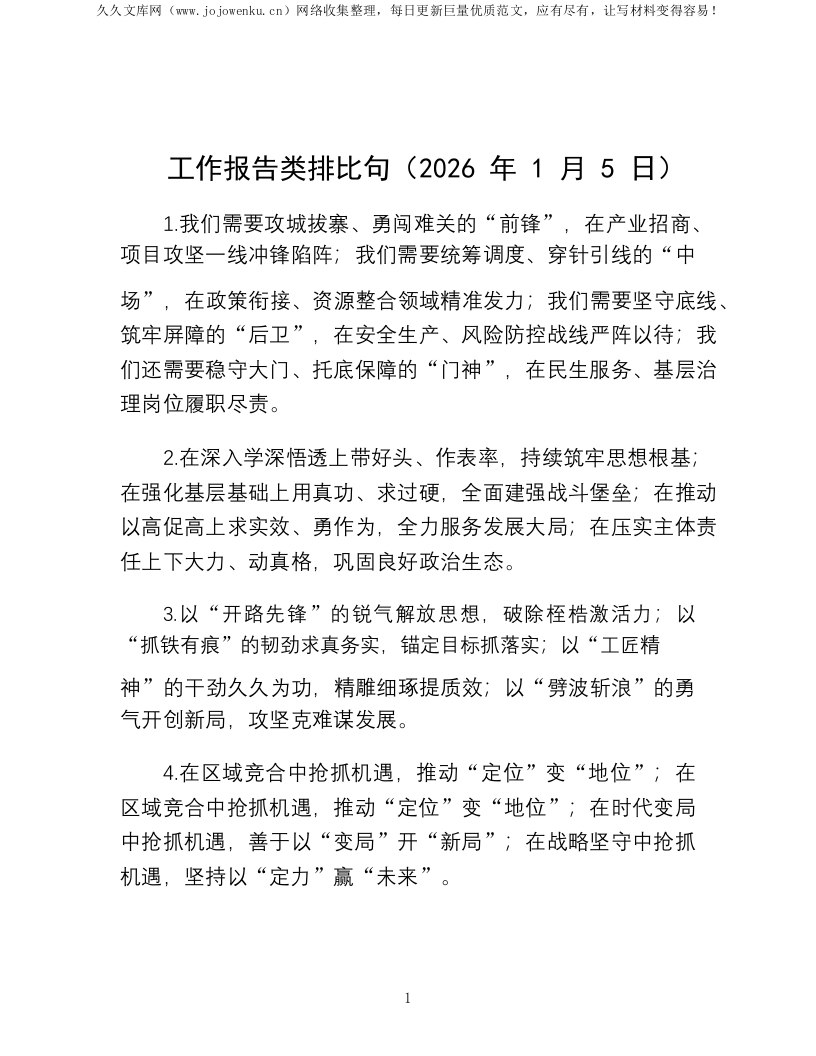 工作报告类排比句(2026年1月5日)
