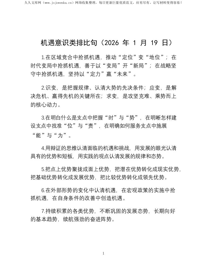 机遇意识类排比句(2026年1月19日)