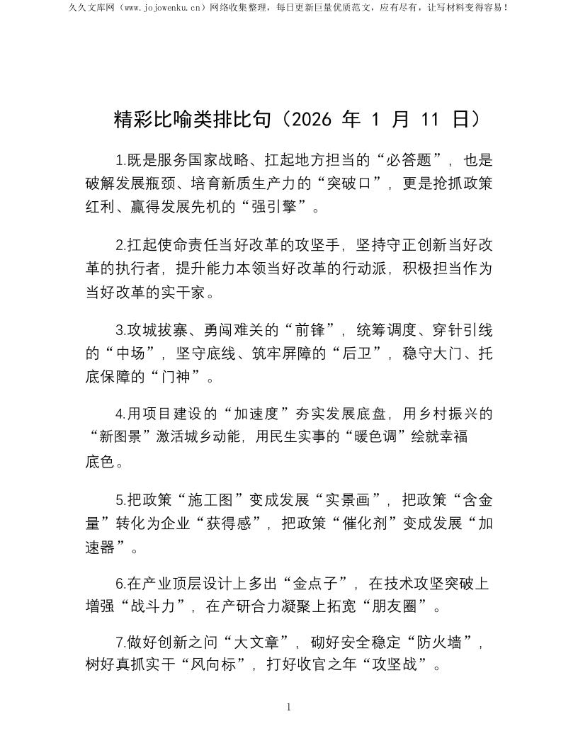 首页写作提升排比句精彩比喻类排比句(2026年1月11日)
