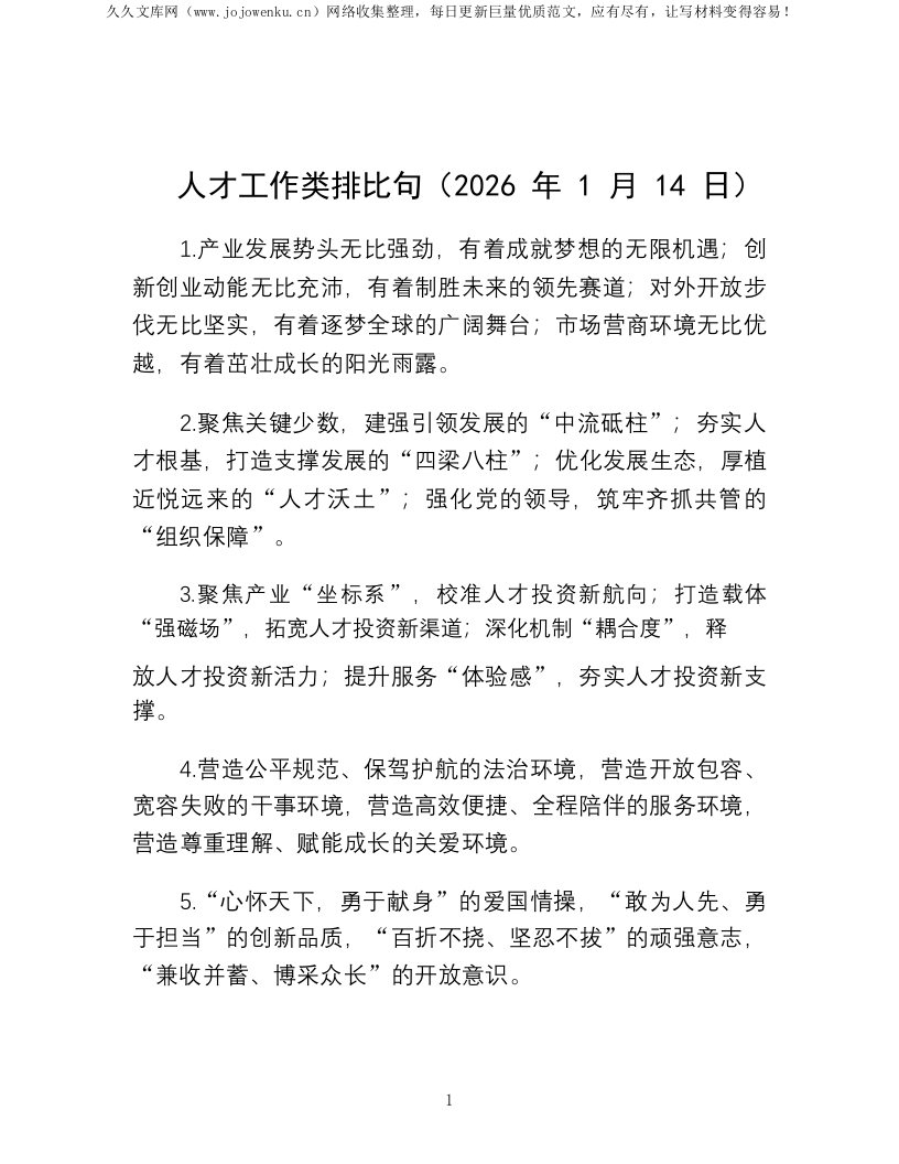 人才工作类排比句(2026年1月14日)