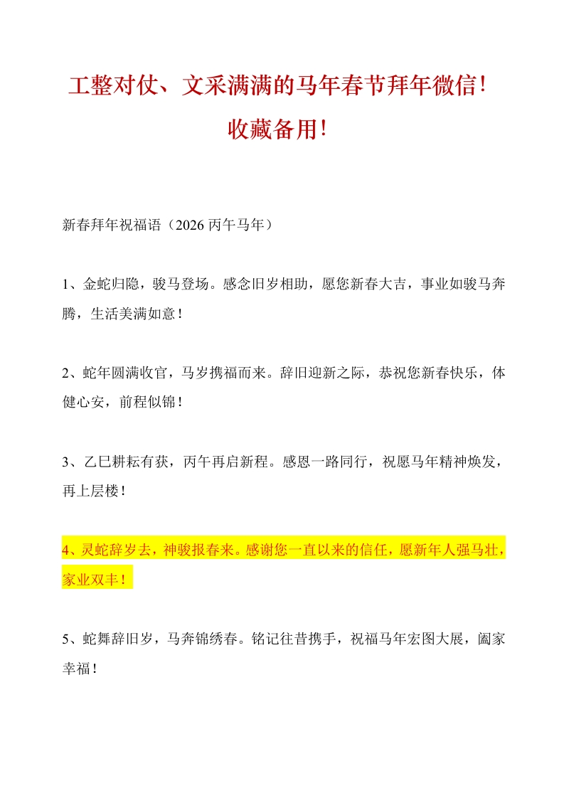 首页写作提升写作观点及其他素材精炼对仗的马年春节拜年微信