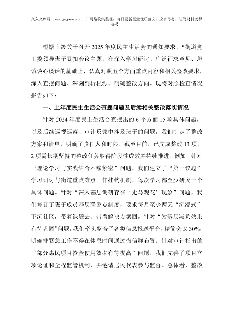 首页公文大全民主生活会街道领导班子2025年度民主生活会对照检查材料