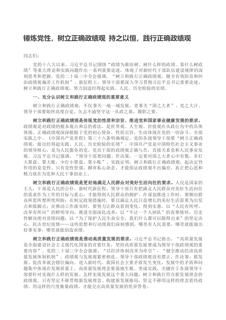 首页公文大全党课讲稿 锤炼党性,树立和践行正确政绩观