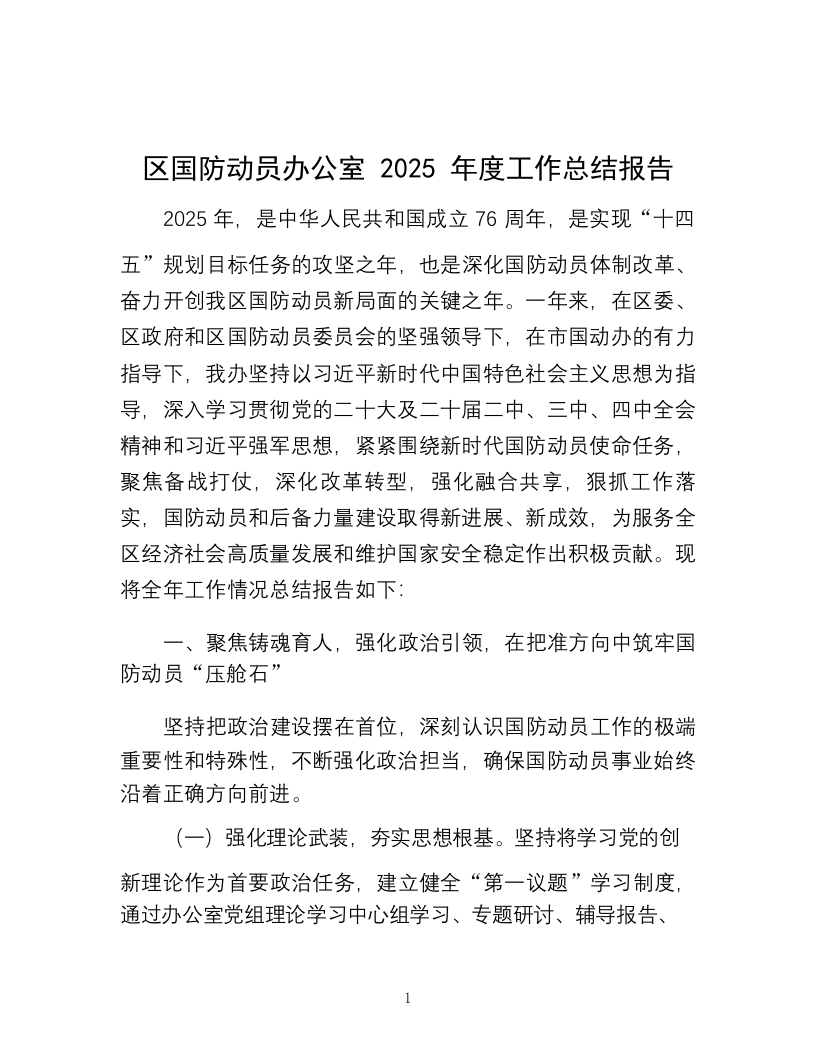 首页公文大全总结报告总结区国防动员办公室2025年度工作总结报告