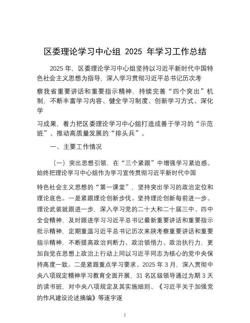 区委理论学习中心组2025年学习工作总结